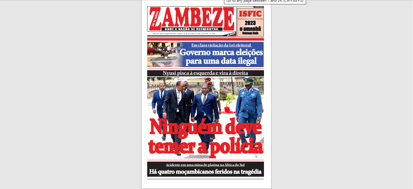Os recentes acontecimentos no país, desde a morte do músico Azagaia até as manifestações ligadas ao processo eleitoral no país, mostraram uma tendência repreensiva da polícia moçambicana, que culminou com mortes e ferimentos graves de cidadãos indefesos. Além disso, membros da polícia são condenados em processos judiciais, acusados de raptos e outros crimes hediondos no país. Entretanto, ontem, falando na abertura do XXXIII Conselho Coordenador do Ministério do Interior, que se realiza sob o lema: “MINT: Consolidando estratégias de desenvolvimento institucional e de aprimoramento da segurança interna face aos desafios da criminalidade organizada, com enfoque nos raptos, terrorismo, seu financiamento e branqueamento de capitais”, Filipe Nyusi sublinhou as funções da polícia, tendo lembrado que deve haver consciência de que é preciso estar presente para poder prevenir o crime, por isso ninguém deve ter medo da polícia se estiver a agir correctamente. Ler mais…